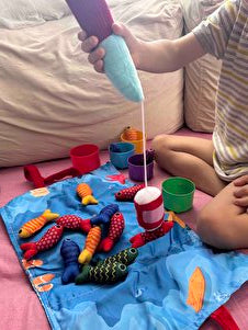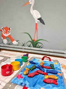 Montessori Balık Tutma Oyunu, çocuğunun küçük kaslarını harekete geçirerek kavrama, koordinasyon ve el-göz uyumunu oyun içinde kendiliğinden geliştirmesine yardımcı olur.